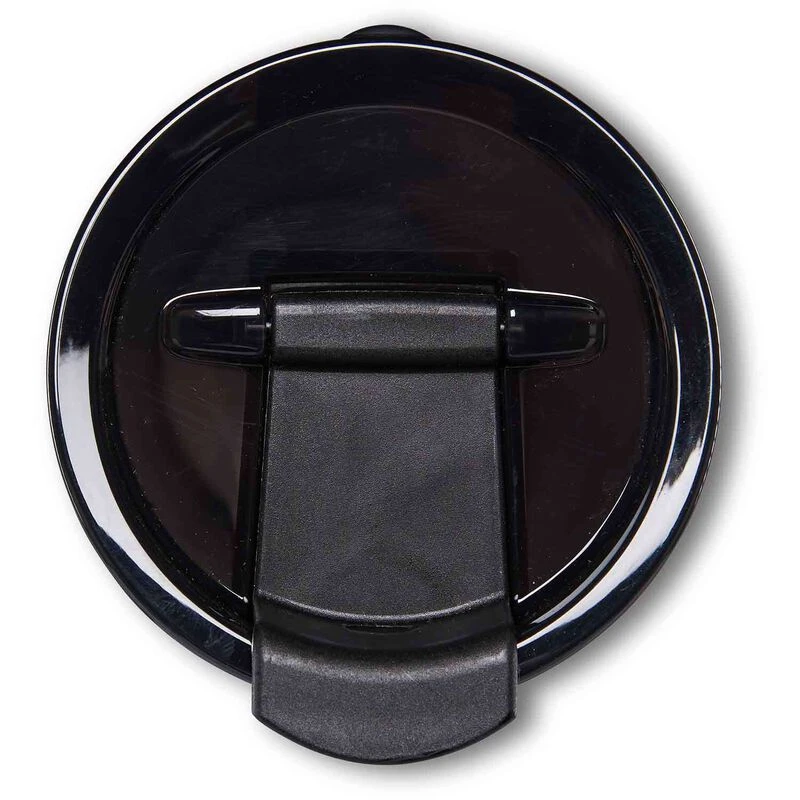 - Transparent lid with mouth opening cover that flips & snaps in to secure