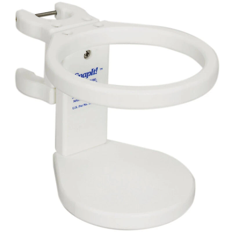 The pivoting single drink holder is a handy way to keep your beverage in place when the going gets bumpy. Made primarily to fit angled tubes on your boat. Designed for canned drinks with insulated sleeves. Made with a “U” clamp, it comes with screws for permanent mounting if desired. Fits 1″ rails. 4 1/2″L x 4 1/2″W x 6 1/2″H.